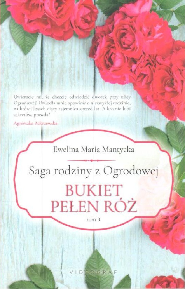 Saga rodziny z Ogrodowej : Bukiet pełen róż / Ewelina Maria Mantycka. - Wydanie I. - Chorzów : Wydawnictwa Videograf, 2021. - 349, [3] strony : ilustracje ; 21 cm.