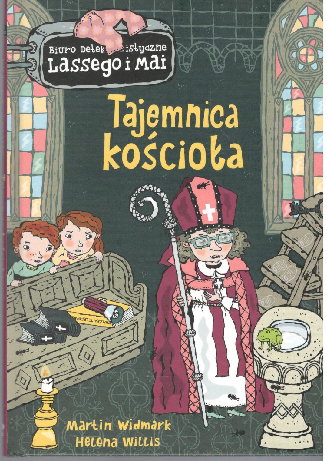 "Po wielu latach pracy pastor z Valleby ma przejść na emeryturę. Jednak podczas uroczystości przekazania parafii w kościele dzieją się dziwne rzeczy. Czy to tylko głupie żarty, czy może ktoś dopuścił się sabotażu? Sprawa staje się poważna, gdy z zakrystii znika pewien drogocenny przedmiot. Lasse i Maja nie mają łatwego zadania! Kolejne tytuły serii Biuro Detektywistyczne Lassego i Mai od ponad dwudziestu lat nie schodzą w Szwecji z list bestsellerów, w Polsce również cieszą się ogromną popularnością. Akcja książek rozgrywa się w małym szwedzkim miasteczku Valleby i jego okolicach. Główni bohaterowie, Lasse i Maja, chodzą do tej samej klasy i wspólnie prowadzą małe biuro detektywistyczne.